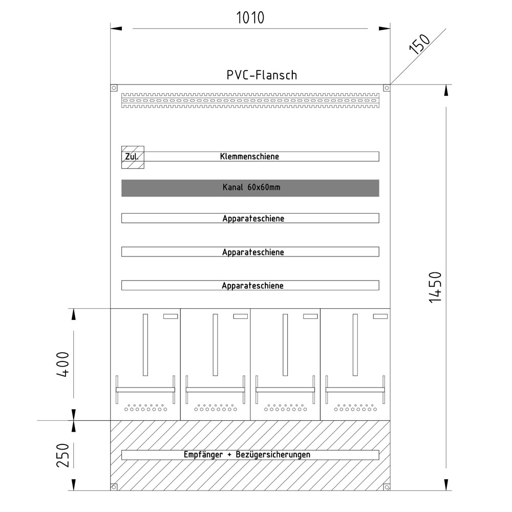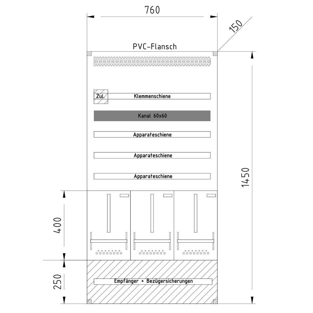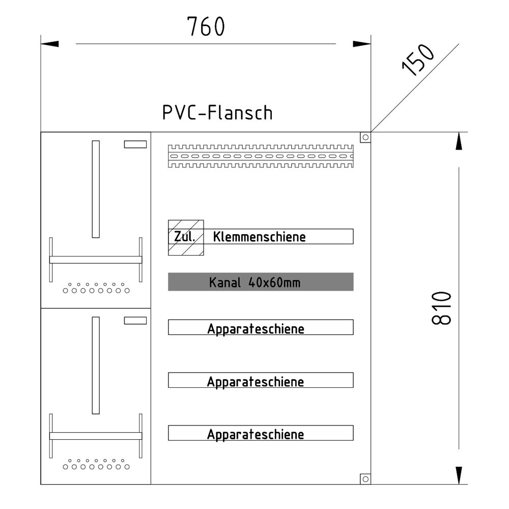 Platz auf Klemmenschiene: 700mm