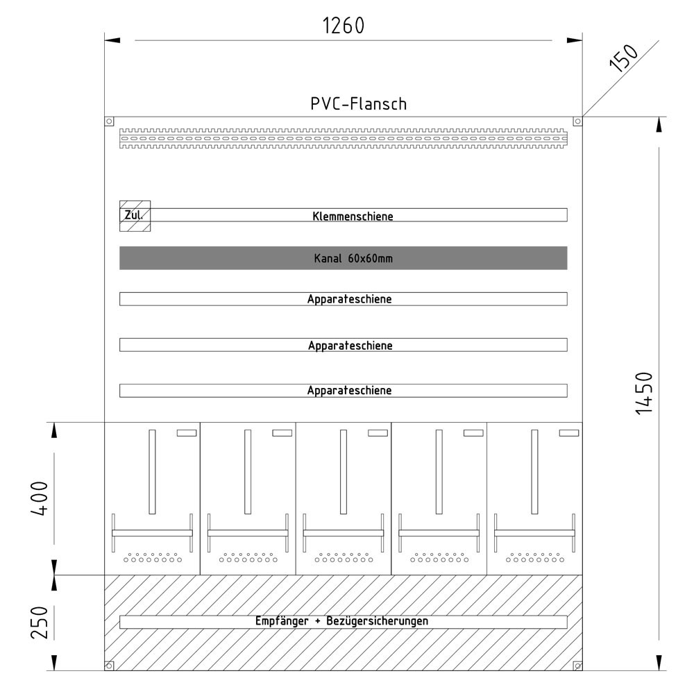 Platz auf Klemmenschiene: 1400mm